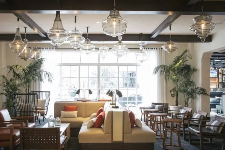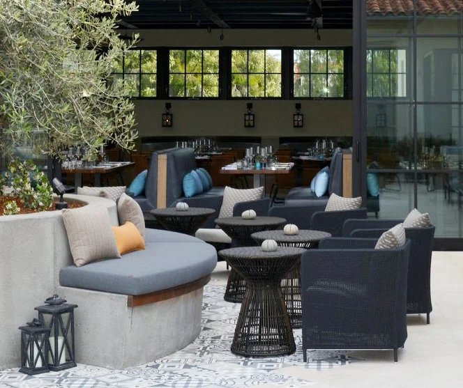 The Four Seasons residence club features a classic Mission design in a modern coastal setting. Redesign of the lobby & reception lounge were included in the luxury resort renovation, with new spa, barista counter, and restaurant + bar design. The restaurant includes indoor and outdoor seating, Chef's Table and Kitchen Counter dining experience. A beautiful private dining room offers a relaxed Mission Villa dining experience. Details include: exposed faux beams, plaster walls, Spanish style and bold geometric tiles, with a refined and casual aesthetic.